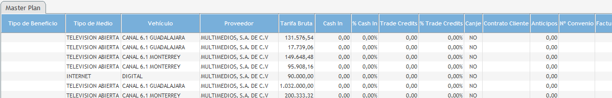 << Haga click para ver la Tabla de Contenidos >> Navegación: Medios > Planificación de Medios > Listado Master Plan |