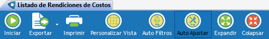 ![]() Al presionar el botón Iniciar expone la información del reporte. Exportar: sirve para descargar el reporte a cualquiera de los formatos disponibles en el menú desplegable y si se lo necesita también se puede Imprimir Personalizar vista: permite indicar que columnas que desean visualizar. Auto Ajustar: habilita, en cada columna, el auto filtro, donde permite efectuar diversas búsquedas en cada campo. Los botones expandir y colapsar permiten ver un listado detallado o resumido.