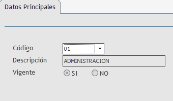 ![]() Se ingresa en forma automática un Código de identificación, único por cada Grupo de Centro de costo. En la Descripción se debe incluir un nombre representativo, generalmente que identifique a la asociación. El check Vigente indica el estado del Grupo del Centro de Costos y si el mismo va a poder ser utilizando en la asociación o no. |