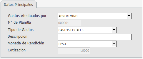 Previo a comenzar a utilizar la planilla, no es necesario que se hayan anticipado valores por parte del departamento contable, se pueden efectuar los gastos, cargar las planillas y luego se reintegren. La carga de los gastos no tiene discriminación de impuestos, solo se ingresa el valor total. La carga de cada gasto se debe efectuar en forma separada, si los gastos no tienen comprobante grabados de impuestos, se pueden sumar e ingresar en una línea, como puede ser: tickets de viáticos o combustibles. En el caso que los gastos sean grabados de impuesto y hayan sido emitidos a nombre de la agencia, se debe ingresar uno por cada comprobante, es decir una línea por separado, para que posteriormente el departamento contable pueda discriminar los impuestos. ![]() En la siguiente pantalla, se debe ingresar el gasto, a medida que una persona solicita dinero para efectuar una compra, con el fin de tener un control de los valores en posesión y brindados a los colaboradores. Para comenzar se presiona el botón Nuevo. En forma automática se incorpora el nombre de la persona que registra la planilla y el número de planilla, este es un código con un valor creciente a medida que se crea uno nuevo por cada usuario. Veamos cómo es el proceso de ingreso a través de las distintas etapas.
