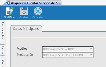En esta opción se asignan las cuentas de comisión que utilizaremos para Medios y para Producción.