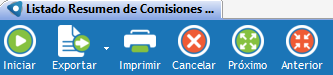 ![]() Una vez completos los campos de los filtros, se presiona el botón Iniciar y donde se visualiza la grilla con toda la información de las comisiones. |