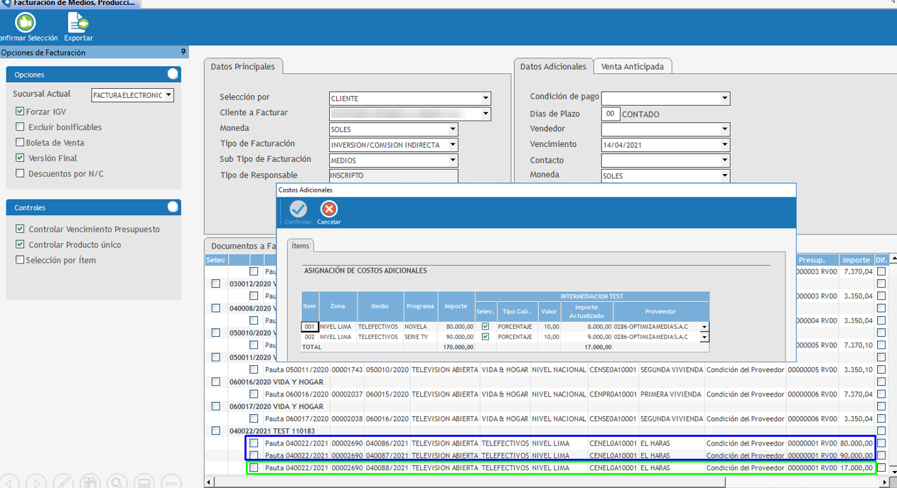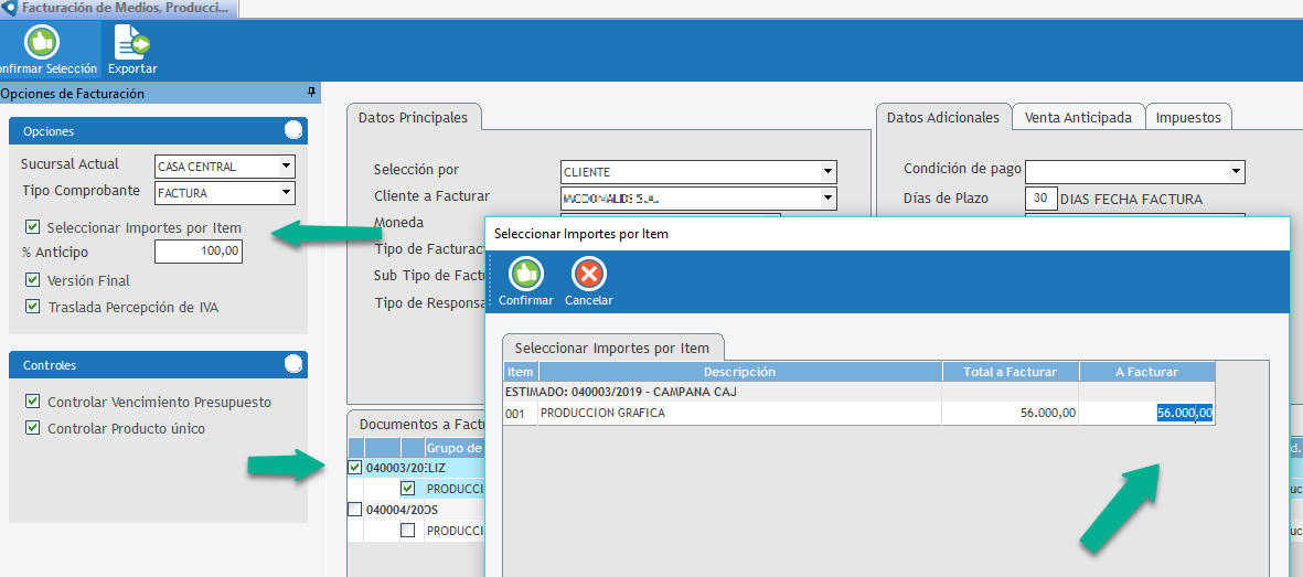 Navegación:  Cuentas por Cobrar > Facturación Clientes > Facturación de Medios, Producción y Fees >