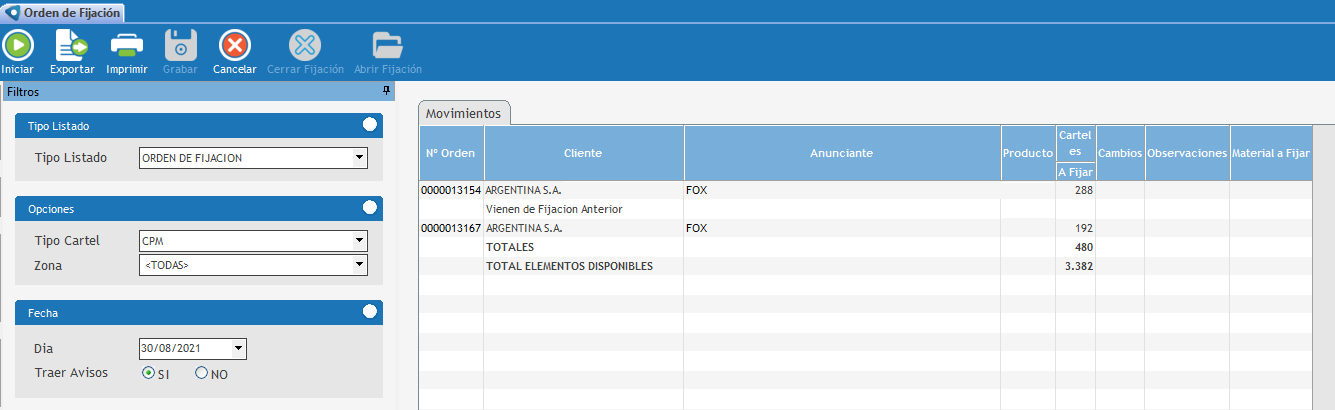 << Haga click para ver la Tabla de Contenidos >> Navegación: Carteles Vía Pública > Ordenes > Orden de Fijación |
