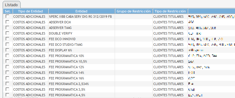 A través del listado podemos visualizar las restricciones generadas en las distintas entidades.