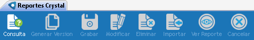 << Haga click para ver la Tabla de Contenidos >> Navegación: Sistemas > Configuraciones de sistema > Mantenimiento de Reportes Crystal |